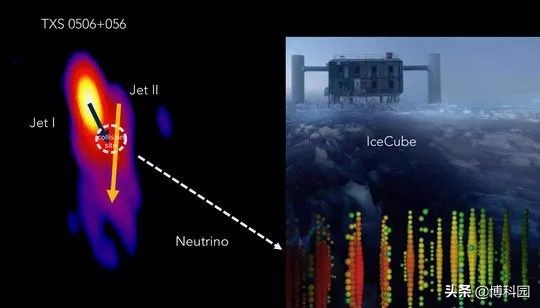 南极冰立方中微子天文台探测到的中微子事件IceCube 170922A,似乎起源于遥远的活动星系TXS 0506+056,距离地球为38亿光年。TXS0506+056是众多活动星系中的一个,为什么以及如何只有这个特定的星系产生中微子,至今仍是一个谜。由马克斯·普朗克学会射电天文学研究所的Silke Britzen领导一个国际研究小组,研究了2009年至2018年中微子事件前后源的高分辨率无线电观测。该小组提出,早期中微子耀斑期间增强的中微子活动和单个中微子可能是由TXS0506+056内的宇宙碰撞产生。