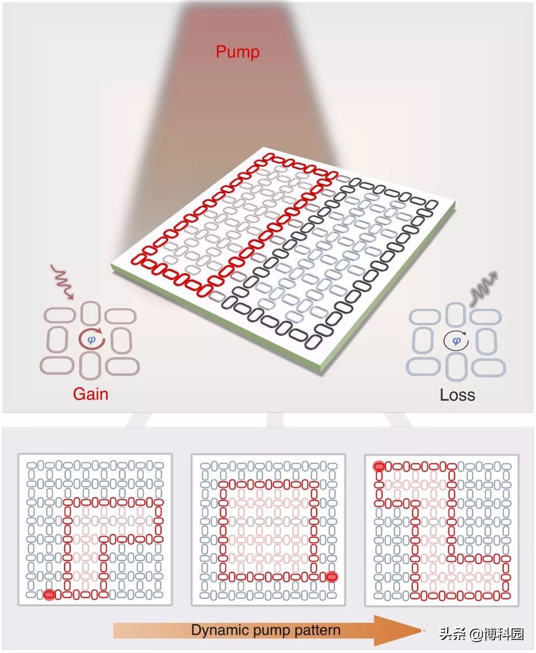 光子芯片原型大约是250平方微米,并以椭圆形环的镶嵌网格为特征。通过用外部激光“泵送”芯片,目标是改变单个环的光子特性,也能够改变这些环中的哪些环构成波导边界。其结果是可重构的拓扑绝缘体,改变不同方向的光子可以相互绕过。而且能够让来自多个数据包的光子同时通过芯片,就像复杂的高速公路立交桥一样。可以定义边缘,使光子可以从任何输入端口传输到任何输出端口,甚至一次到达多个输出端口。