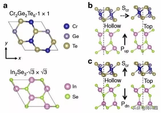 通过反转In2Se3的电极化,计算得到Cr2Ge2Te6的磁晶各向异性在易轴和易面之间发生变化(即铁磁顺序的开/关),这有望实现一种新颖的磁存储器设计。此外,In2Se3成为磁性铁电材料,根据其自身的电极化,具有可切换的自旋极化。理论上,该已经证明层状铁电和铁磁可以与范德华力在化学上耦合,从而将磁性改变为比传统大得多的值。设想,多铁性的二重性潜在地丰富了层分辨数据存储和信息处理,这是由于组成层的不同磁电和磁光属性。