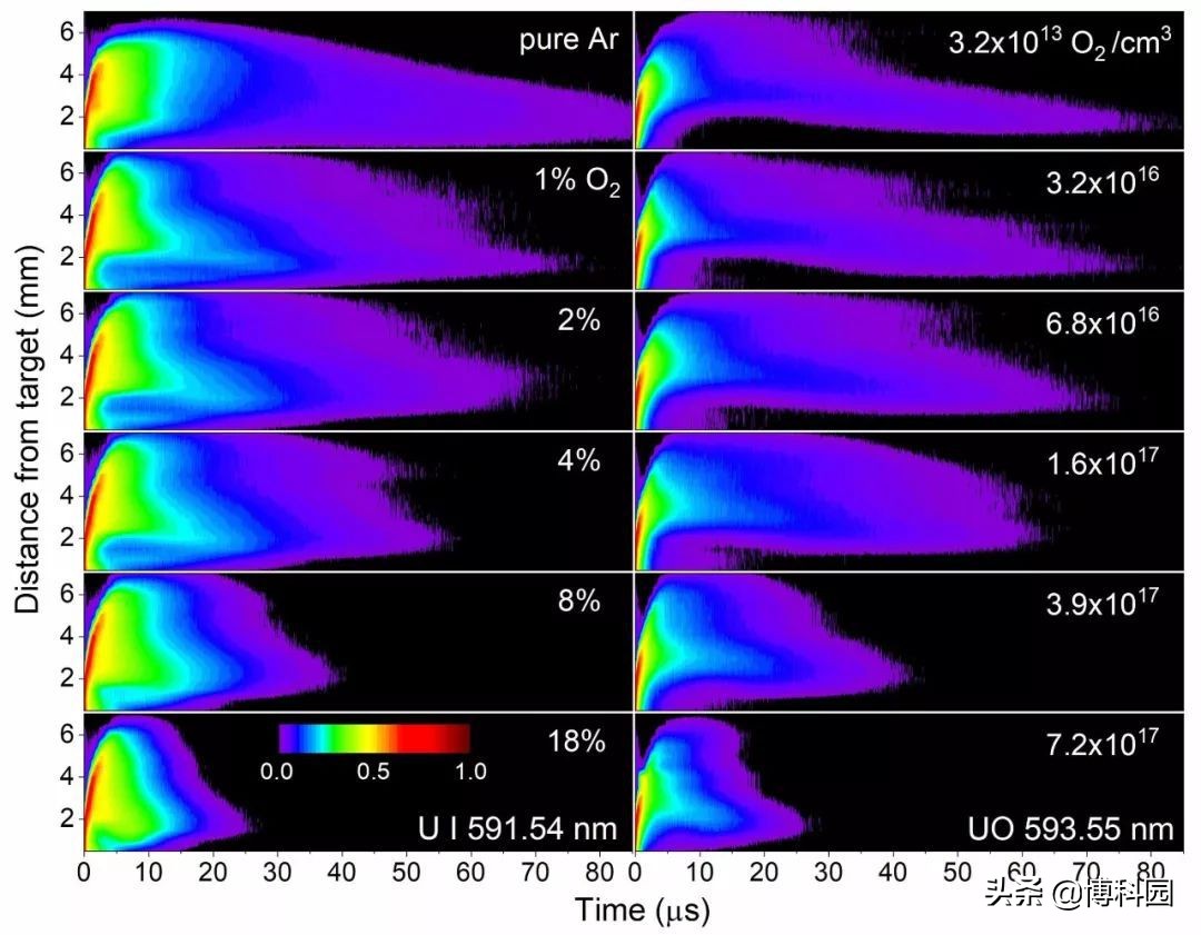 以发现它们形成的时间是多少纳秒,以及等离子体发展的哪个阶段。在发表于《等离子体物理学》期刊上的研究论文中,作者们发现,铀与不同比例的氧气混合后,会形成更复杂的分子,如一氧化铀、二氧化铀和其他更大的组合。