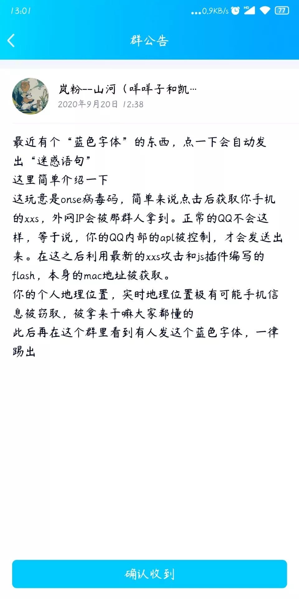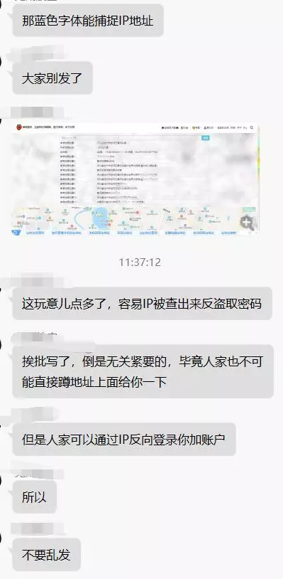 原因就是某个时间,某群内突然说这个卡片是最新型的病毒,并称可以截取手机的ip地址,情况十分严重: