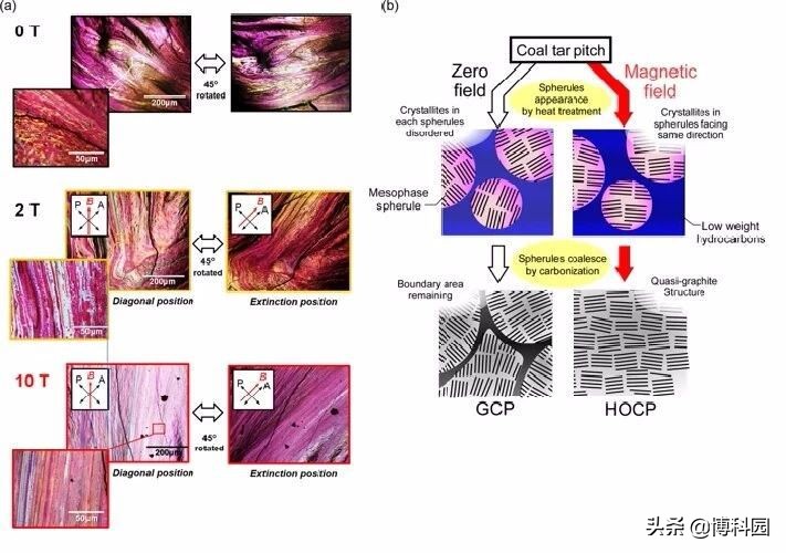 从而使活性炭孔隙体积增加35%,从而创造出更高效的活性炭形态。羟甲基糠醛促进结晶的形成,当结晶越多,就会产生更多的裂口,从而使化学物质与活性炭接触。许多其他具有负磁化率的材料也可以用这种与HMF有效的程序来制造,以获得更好性能。研究了外加磁场对煤焦油沥青碳材料形成的影响。在外加磁场作用下,类似液晶的中间相晶体在碳化过程中具有磁性取向。与非磁场下相比,超导磁体在10T强磁场下产生的炭化煤焦油沥青具有高度定向碳晶结构。