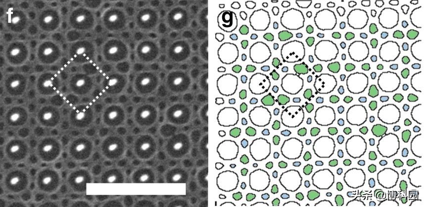 由此产生的奇怪图案是“聚合物想要形成的图案和模板之间受挫的结果,这种挫折感导致了原有对称性的破坏,并在其中创建了具有不同对称性的新子区域,这是大自然提出的解决方案。为了适应这两种模式之间的关系,第三件事打破了这两种模式,研究人员将这种新模式描述为“超晶格”创建了这些新的结构之后,团队继续开发模型来解释这个过程,建模工作表明,这些涌现模式实际上在热力学上是稳定的,并揭示了新模式形成的条件。