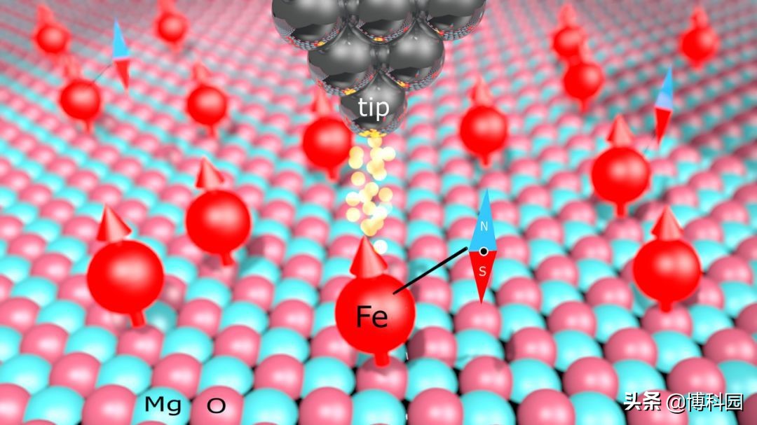 在这项工作中研究的两种元素,铁和钛,都是磁性。通过精确地制备样品,原子在显微镜下很容易看得见。然后,研究人员用显微镜的尖端像核磁共振成像仪一样。