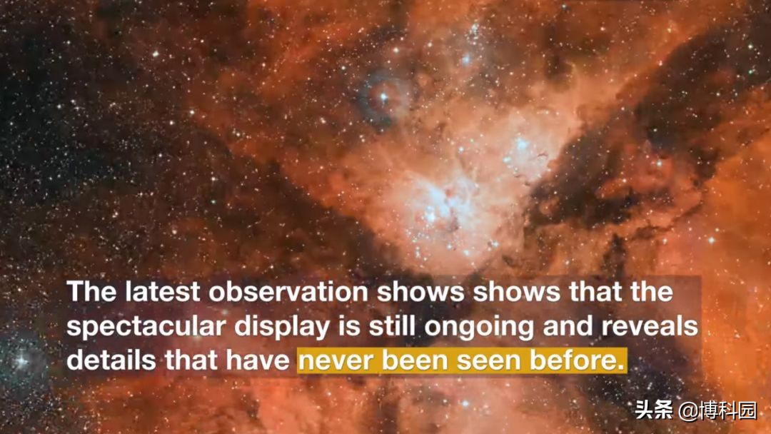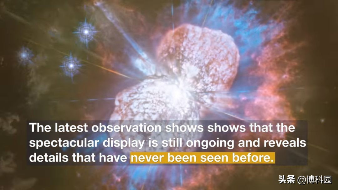 1838年埃塔船底座经历了一次灾难性的爆炸,并迅速升级为1844年4月成为天空中第二亮的恒星。这颗恒星现已经褪色,但这张来自美国宇航局/欧洲航天局哈勃太空望远镜的新照片显示,这一壮观的景象仍在继续,并揭示了从未见过的细节。