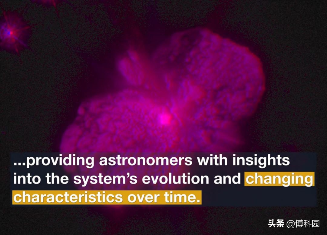 大部分放射物都在我们预计会找到一个空腔的地方,这种额外的物质速度很快,就已经强大的恒星爆炸总能量而言,无疑火上浇油。这个新发现的数据,对于理解喷发是如何开始的很重要,因为它代表了在星云的其他部分,被驱逐之前恒星可能已经被驱逐的物质快速和能量的喷射。天文学家需要更多的观测,来精确测量物质移动速度和它被喷射的时间。图像的另一个显著特征是,在左下角气泡外的蓝色区域可以看到条纹。