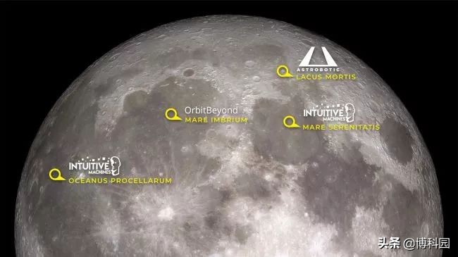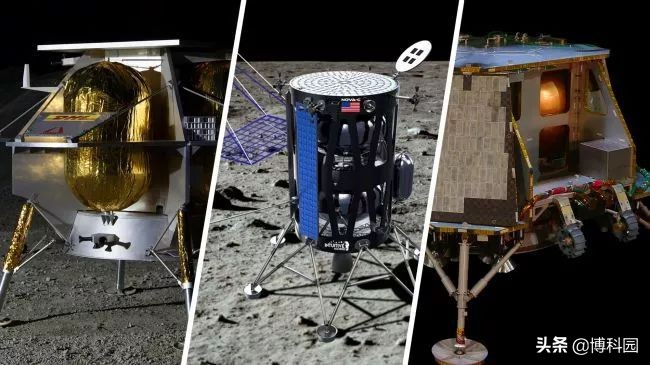 - (博科园-图示)艺术描绘了商业公司Astrobotic, Intuitive Machines和Orbit Beyond的登月设计。图片:Astrobotic; Intuitive Machines; Orbit Beyond