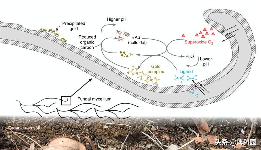 这种丝状真菌通过从周围环境中溶解和沉淀颗粒,将黄金附着在其链上,这一过程可能为寻找新的金矿提供线索。这样做也有生物学上的优势,因为被金包裹的真菌比那些不与金相互作用并在生物多样性土壤群落中发挥核心作用的真菌长得更大,传播速度更快。这一发现是由澳大利亚国家科学机构CSIRO发现,并发表在《自然通讯》上。